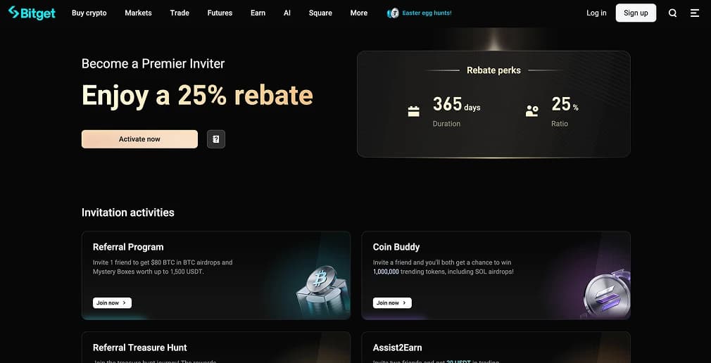 Bitget runs two parallel programs. The standard Referral Program is automatic, every verified user gets a code. The Affiliate Program is application-based with higher commissions and account manager support.