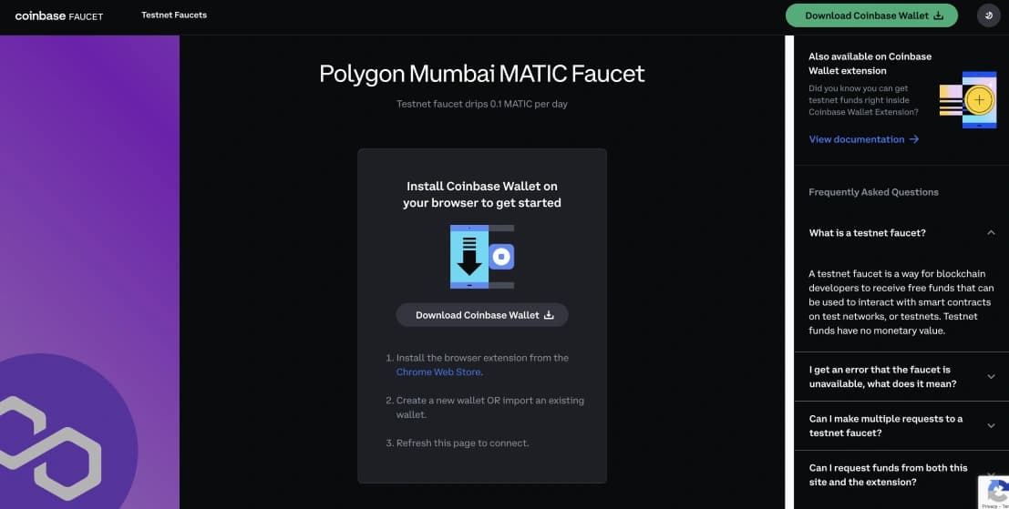 Pour obtenirtestnet fiablestestnet Polygon , pensez à utiliser Coinbase Faucet et Triangle, deux sources réputées. À l'instar du Polygon Faucet officiel, ces plateformes offrent une allocation quotidienne de 0,001 MATIC.
