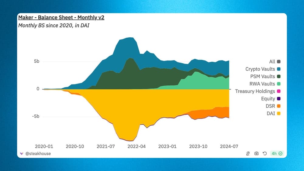 Maker's protocol already holds over $2 billion in real-world asset (RWA) vaults, accounting for nearly half of its assets, per a Dune dashboard. The initiative targets short-duration US T-Bills and similar tokenized products, with the current $2 billion market size indicating Maker's plan could expand it by 50%.